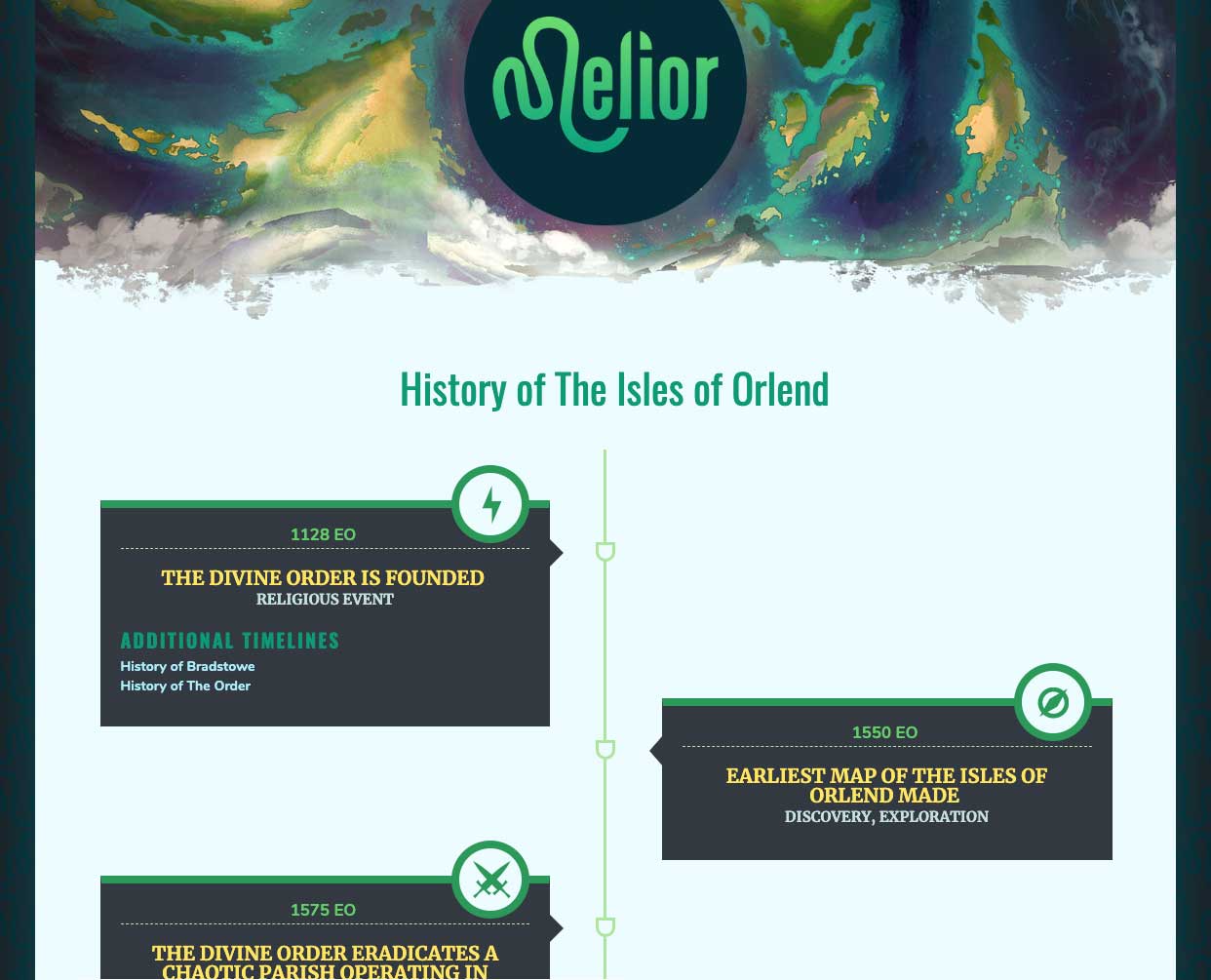 Keep track of everything that's happened in your world with Timelines! Use parallel timelines to track events in a specific country or for a character. Separate your timelines into eras and use a variety of specialized timeline features to display your events the way you want.